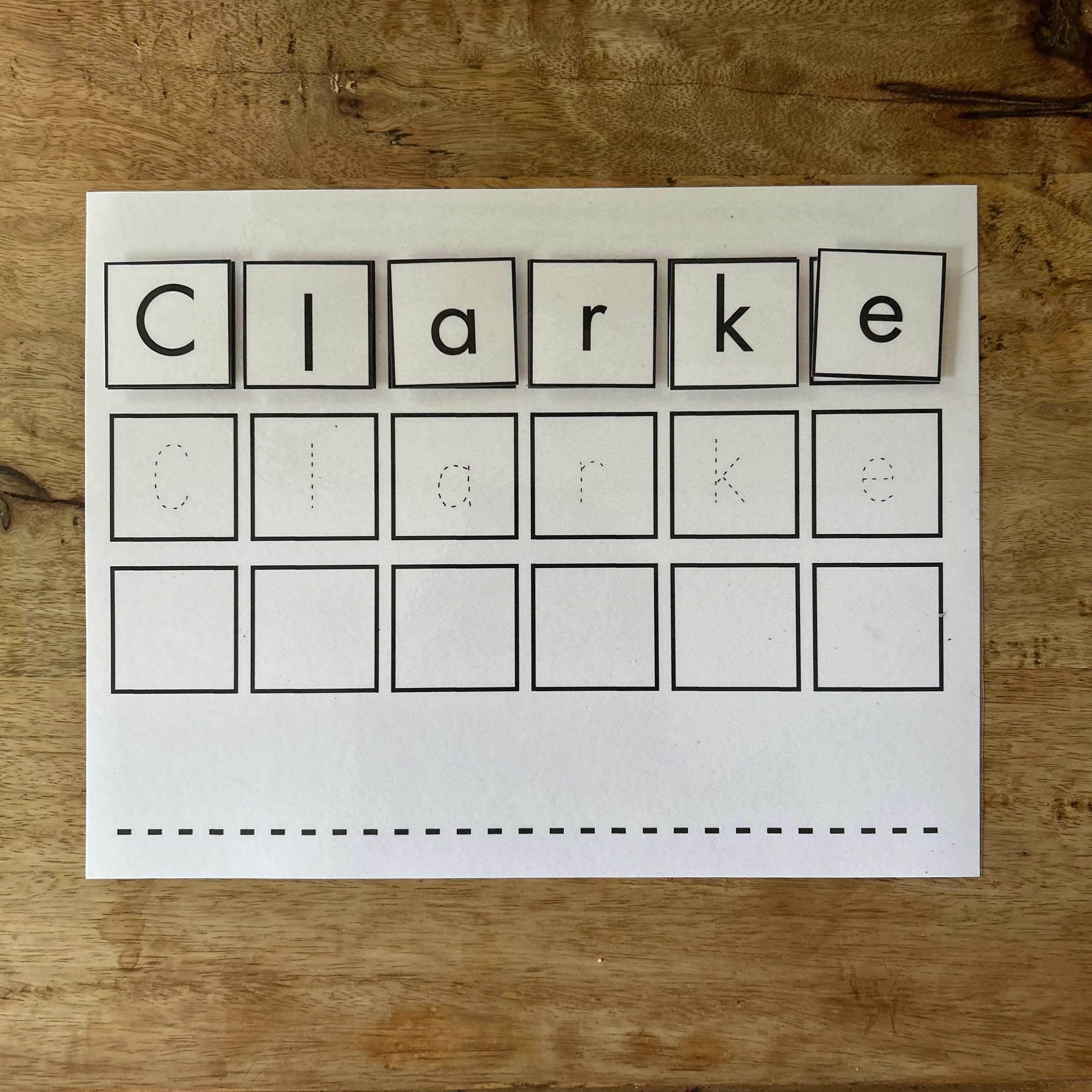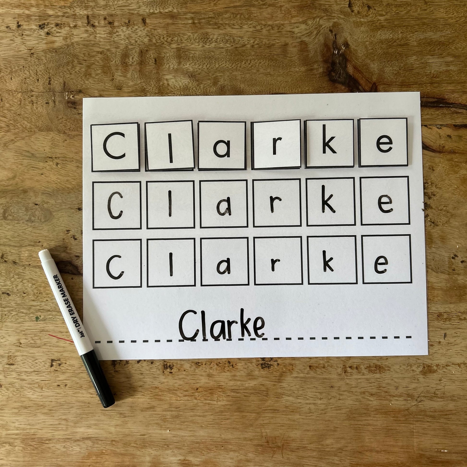 This personalized name will help your little one become familiar with the letters of their name and learn to write it (with a Capital letter to begin and the rest lowercase). They will be able to velcro the letters in the correct order, trace their name, free hand their name within blocks, and write their name on a line! These are laminated so they can be used over and over again! Use code CHORE for free shipping on this product!