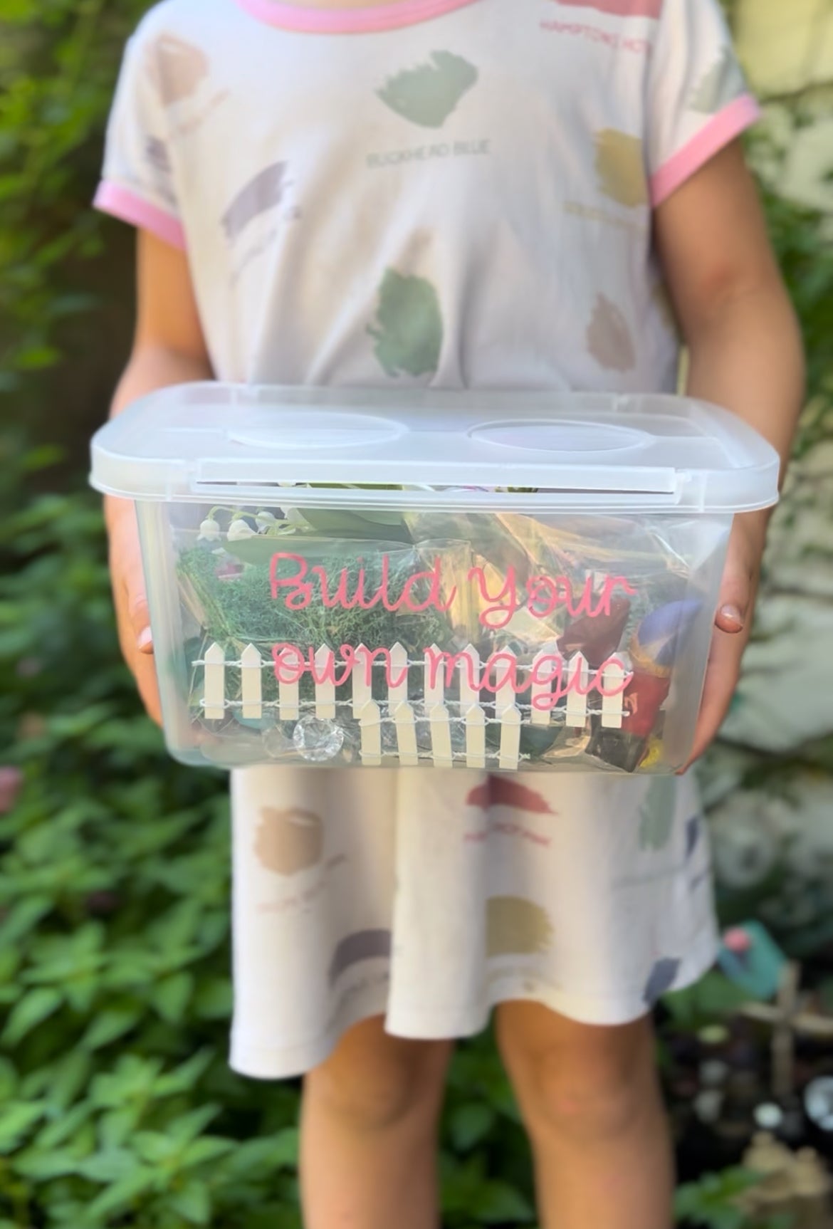 Build your own magic with our Enchanted Fairy Garden kit! Take it on the go or move from one spot to the next! Each kit will vary slightly with colors / contents. Perfect birthday gift or an activity for summer. Add your own sticks, rocks, shells and more.