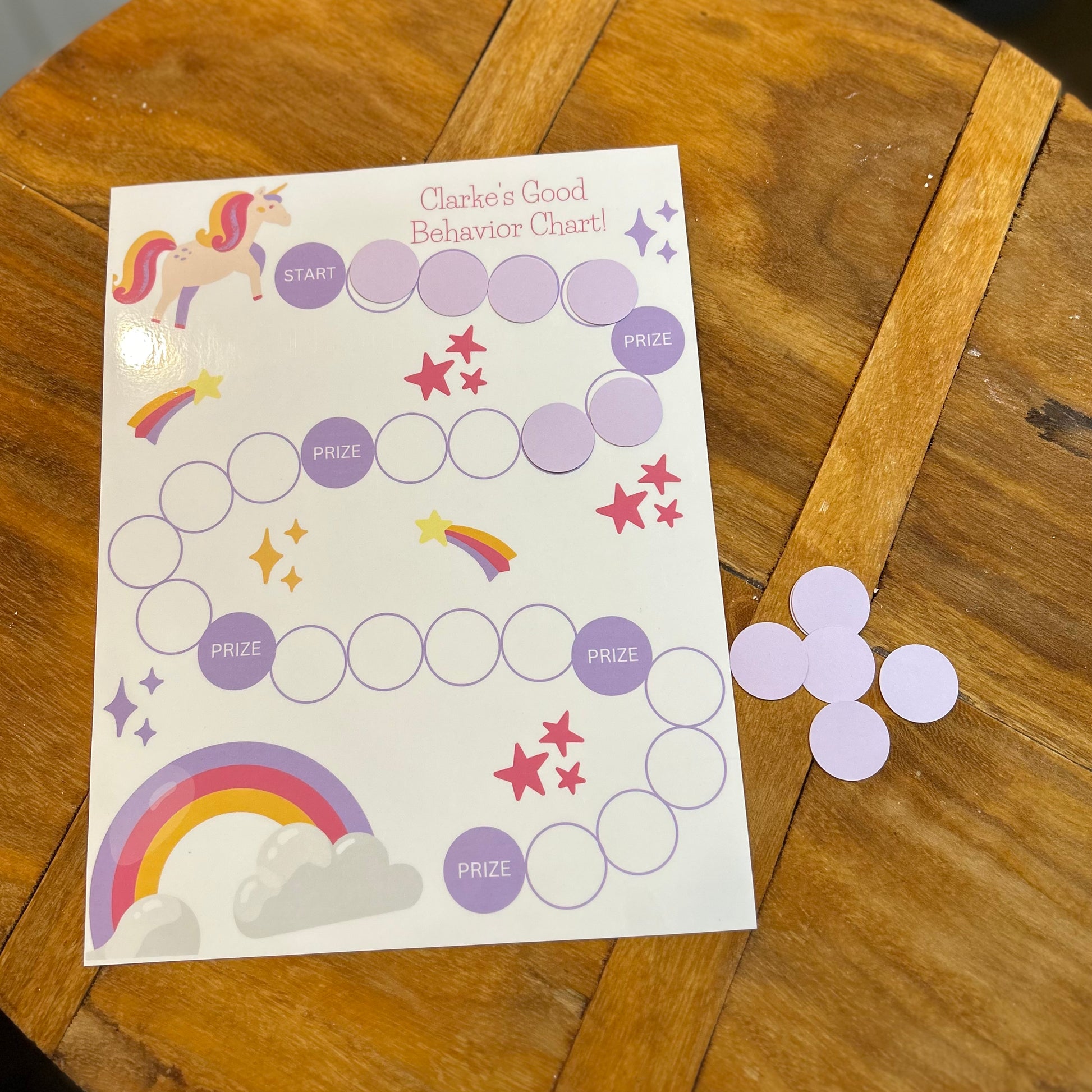 We are big believers in positive reinforcement in our house! These charts are a great way to encourage good behavior with little rewards along the way (it can be 5 extra minutes watching a show or 3 m&ms--doesn't have to be big)! These are laminated with velcro tabs so you can use over and over again! They come personalized with your child's name too!